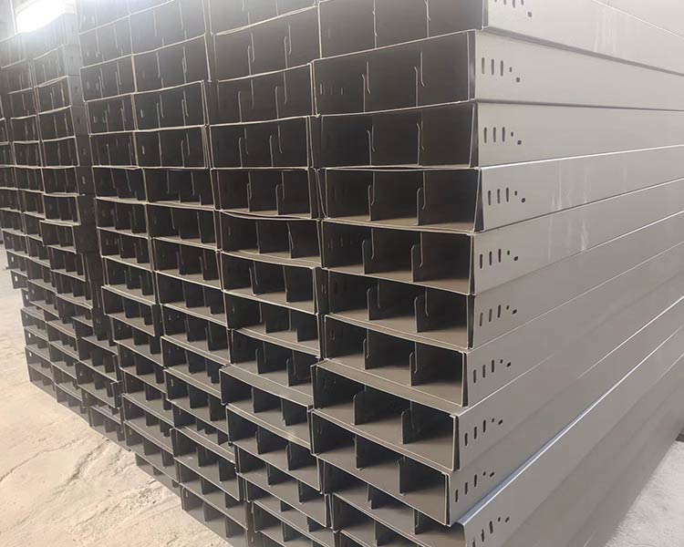 4)需要屏蔽電磁干擾的電纜線路.或有防護外部影n向如戶外日照。腐蝕性液體、易燃粉塵等環境要求時,應選用無孔托盤式電纜橋架。